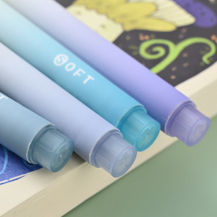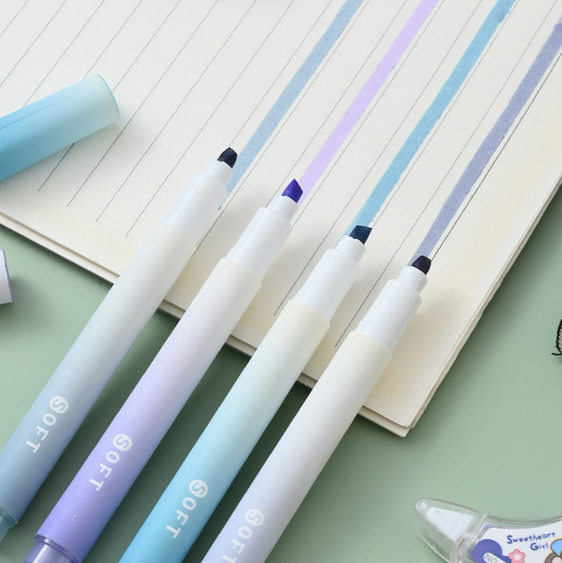 Este set de marcadores pastel con efecto gradiente es perfecto para darle un toque delicado y aesthetic a tus apuntes, planners, journals o libretas. Sus tonos suaves y armoniosos crean trazos limpios y elegantes, ideales para subrayar, decorar o escribir sin saturar visualmente el papel.
