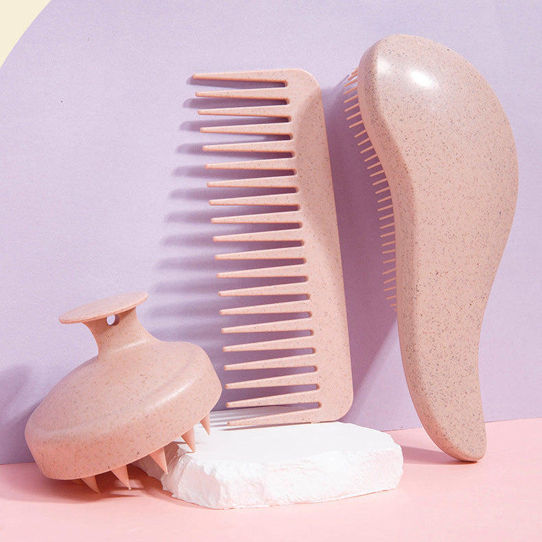 Set para cuidado del cabello incluye un cepillo anti-caspa para todo tipo de cabello, un peine ergonómico de cerdas delgadas de silicona y un peine recto básico.