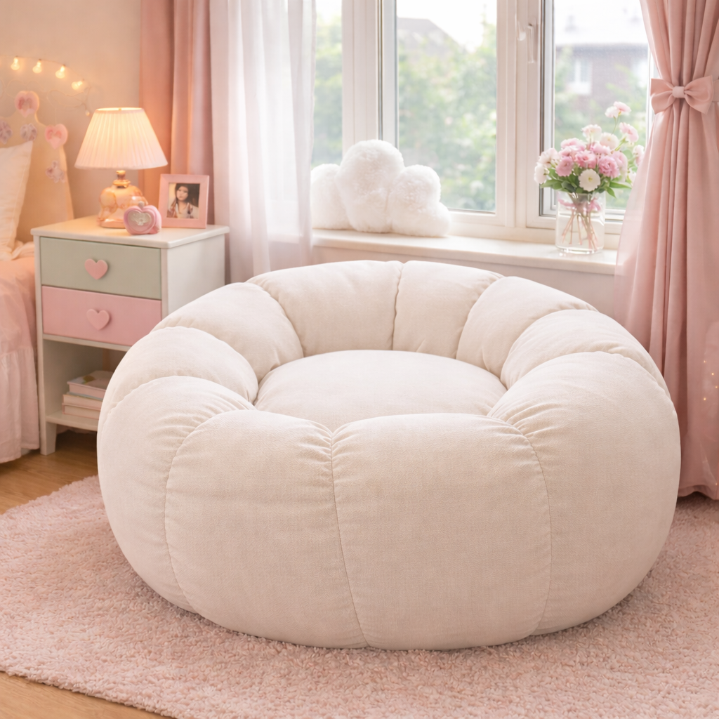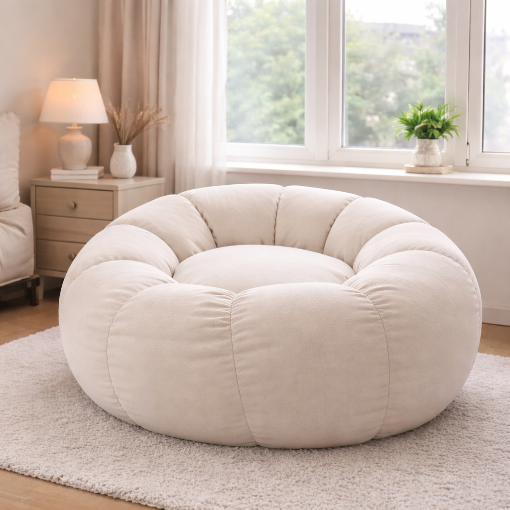 Ideal para salas, dormitorios, espacios juveniles o áreas de descanso, este puff se convierte en el punto focal del ambiente. Su textura exterior aporta un acabado sofisticado, combinando fácilmente con decoraciones minimalistas, modernas o acogedoras. Perfecto para relajarse, leer o simplemente añadir un toque cálido al espacio.