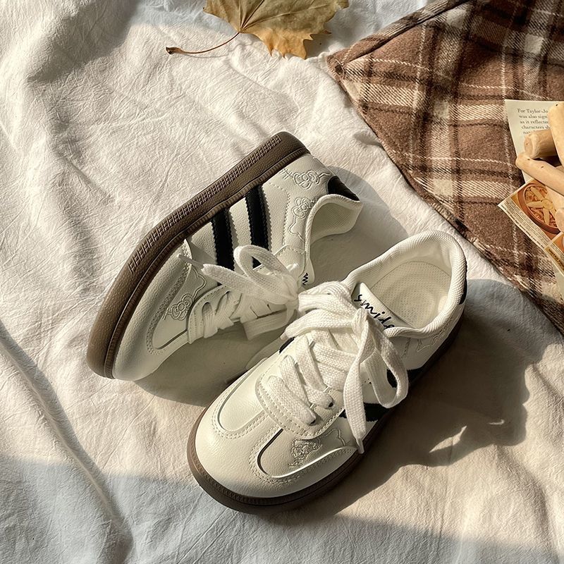 Estos tenis de plataforma combinan un diseño urbano moderno con un toque cute y femenino que los hace irresistibles. Su silueta tipo sneaker clásico con doble franja lateral y detalles bordados aporta un look casual–retro perfecto para elevar cualquier outfit diario, desde jeans hasta vestidos relajados. La plataforma baja brinda un extra de altura sin sacrificar comodidad, ideal para usarlos todo el día.