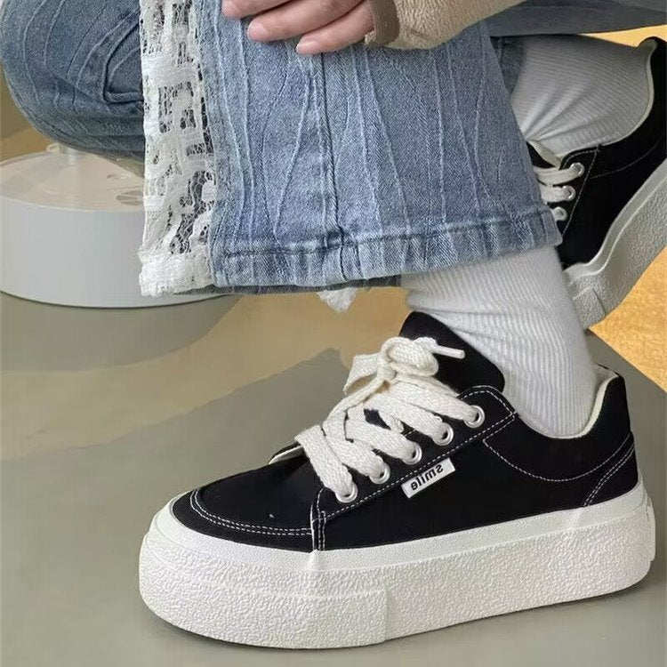 Los sneakers de tela con plataforma son el toque cool & comfy que todo outfit necesita. Con su diseño minimalista y suela alta de estilo vintage, combinan a la perfección con jeans, faldas o vestidos. Su silueta tipo street style coreano les da un aire moderno y relajado que eleva hasta los looks más básicos.