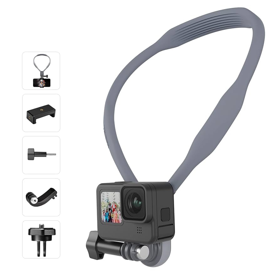 Captura cada momento desde tu punto de vista con este soporte de cámara para cuello manos libres, diseñado para grabar de forma cómoda, estable y segura en actividades dinámicas. Su diseño ergonómico con silicona suave al contacto con la piel permite usarlo por largos periodos sin molestias, mientras mantienes una grabación natural tipo POV (first person view).