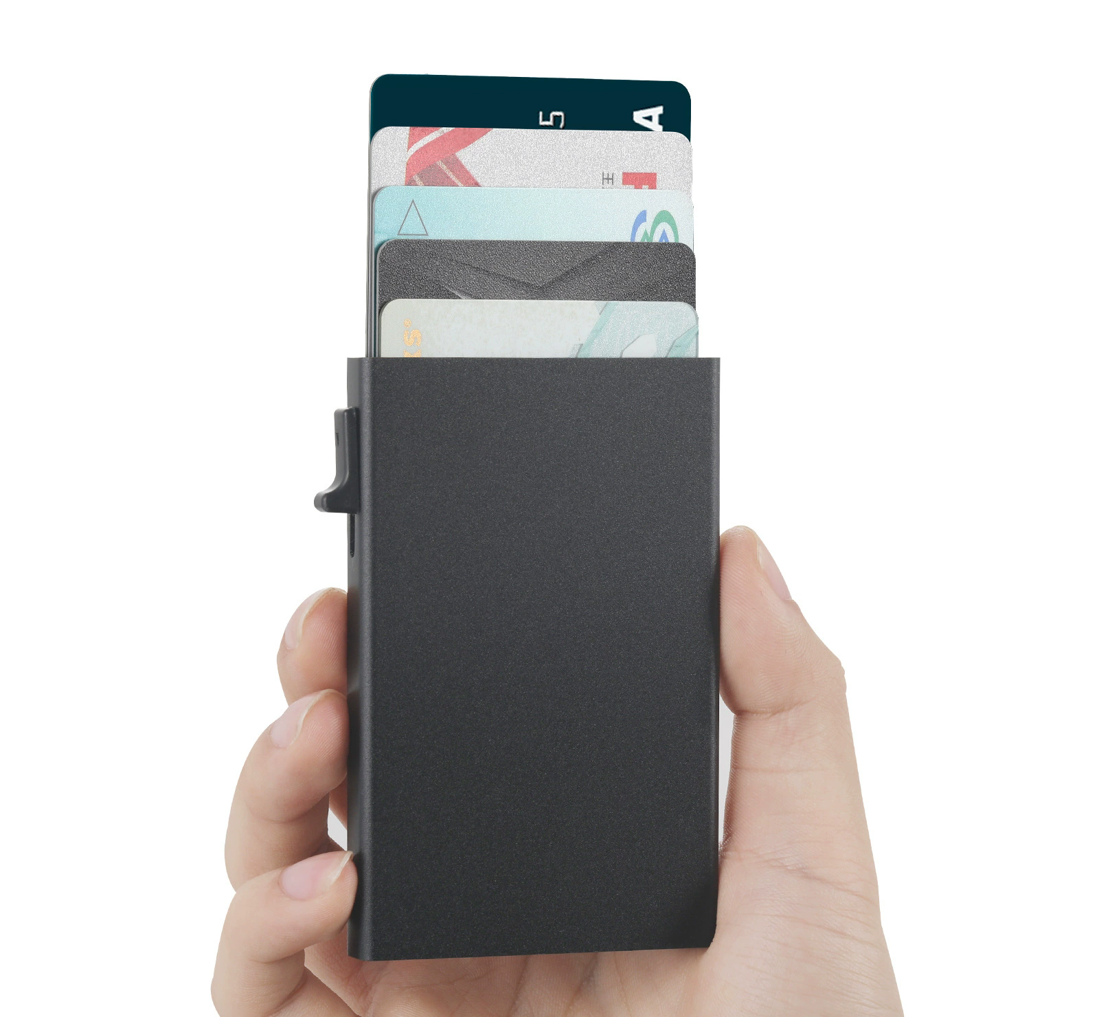 Mantén tus tarjetas seguras y organizadas con esta billetera inteligente de diseño minimalista. Su sistema deslizante permite expulsar las tarjetas de forma rápida y ordenada con solo presionar un botón lateral, facilitando el acceso en segundos sin necesidad de abrir compartimentos tradicionales.