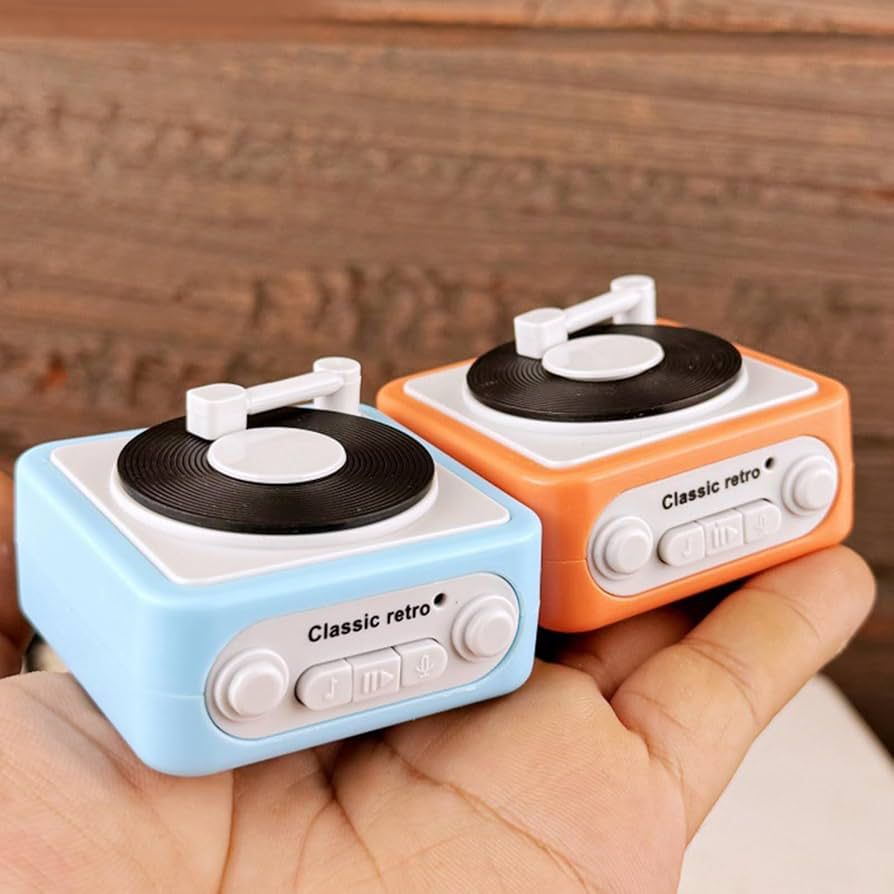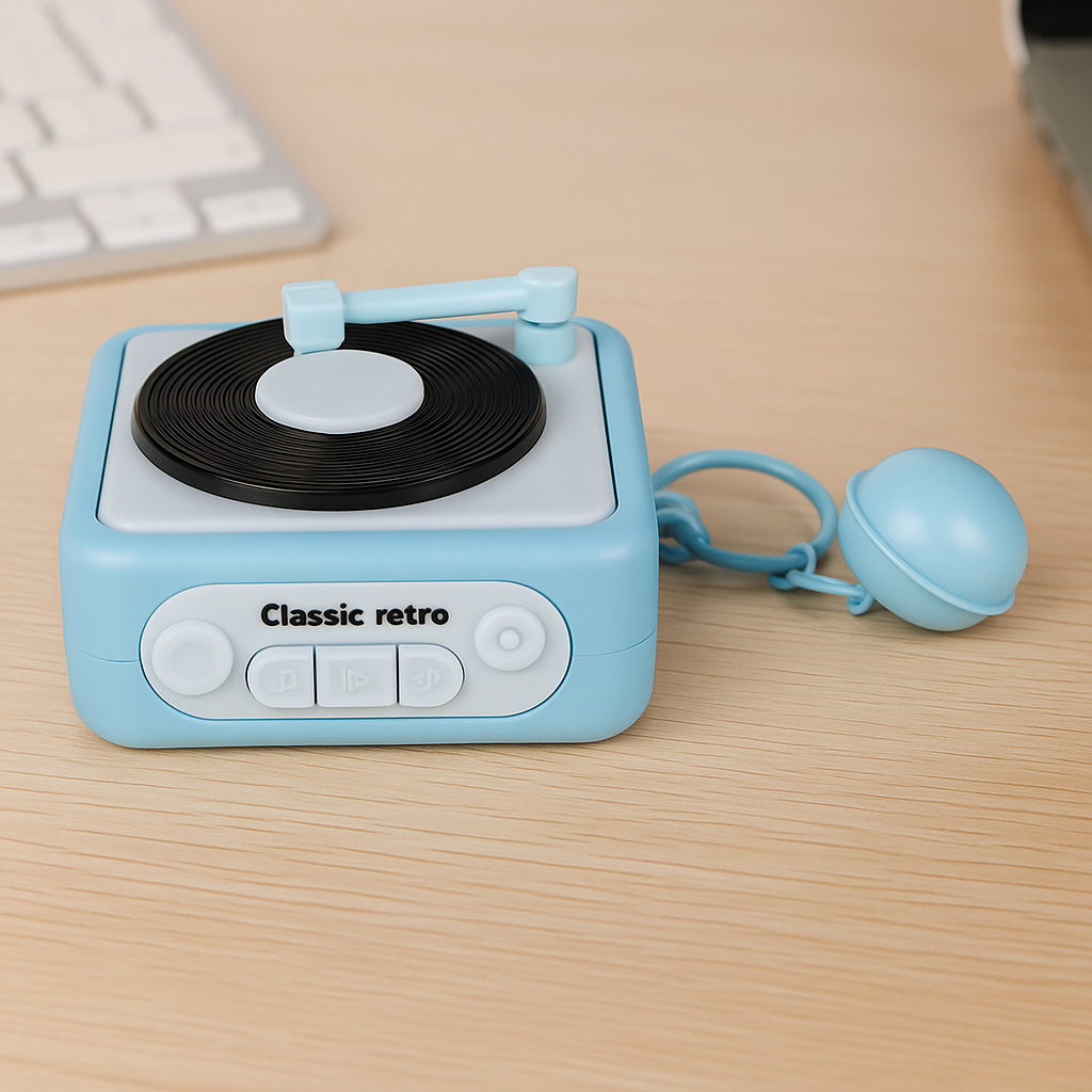 Lleva tu música y tu estilo a todas partes con esta bocina portátil retro en forma de tornamesa clásica. No es solo un altavoz: también funciona como grabadora de voz, para que disfrutes música y tus notas de voz en cualquier momento.