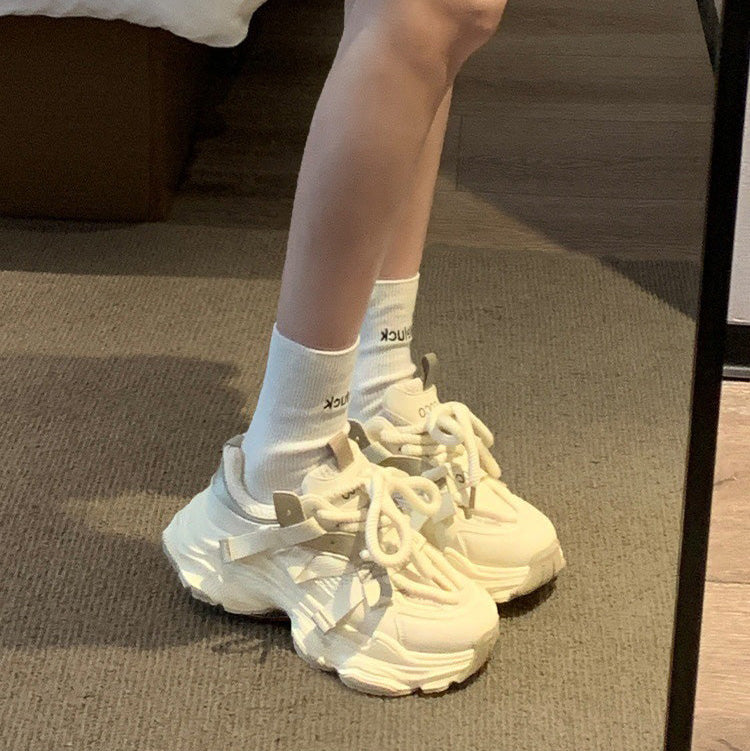 Los tenis gruesos son cómodos, geniales y llenos de estilo. Con su diseño voluminoso tipo plataforma y su color crema neutro, combina con absolutamente todo: desde faldas y vestidos hasta jeans o pantalones cargo.