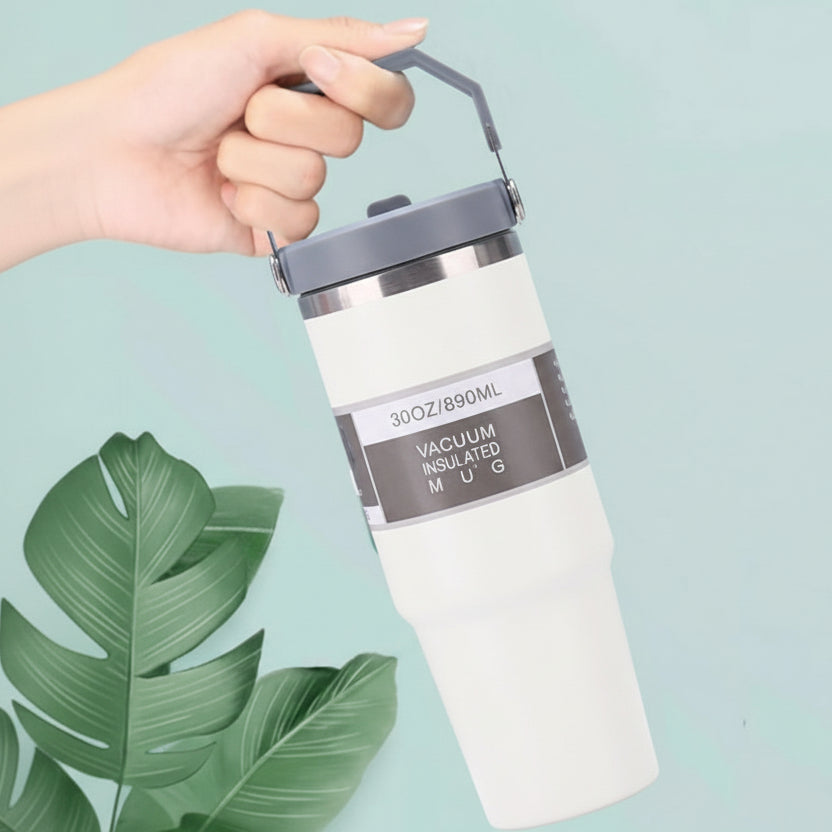 - Capacidad de 890 ml, perfecto para café, té, agua o jugos.