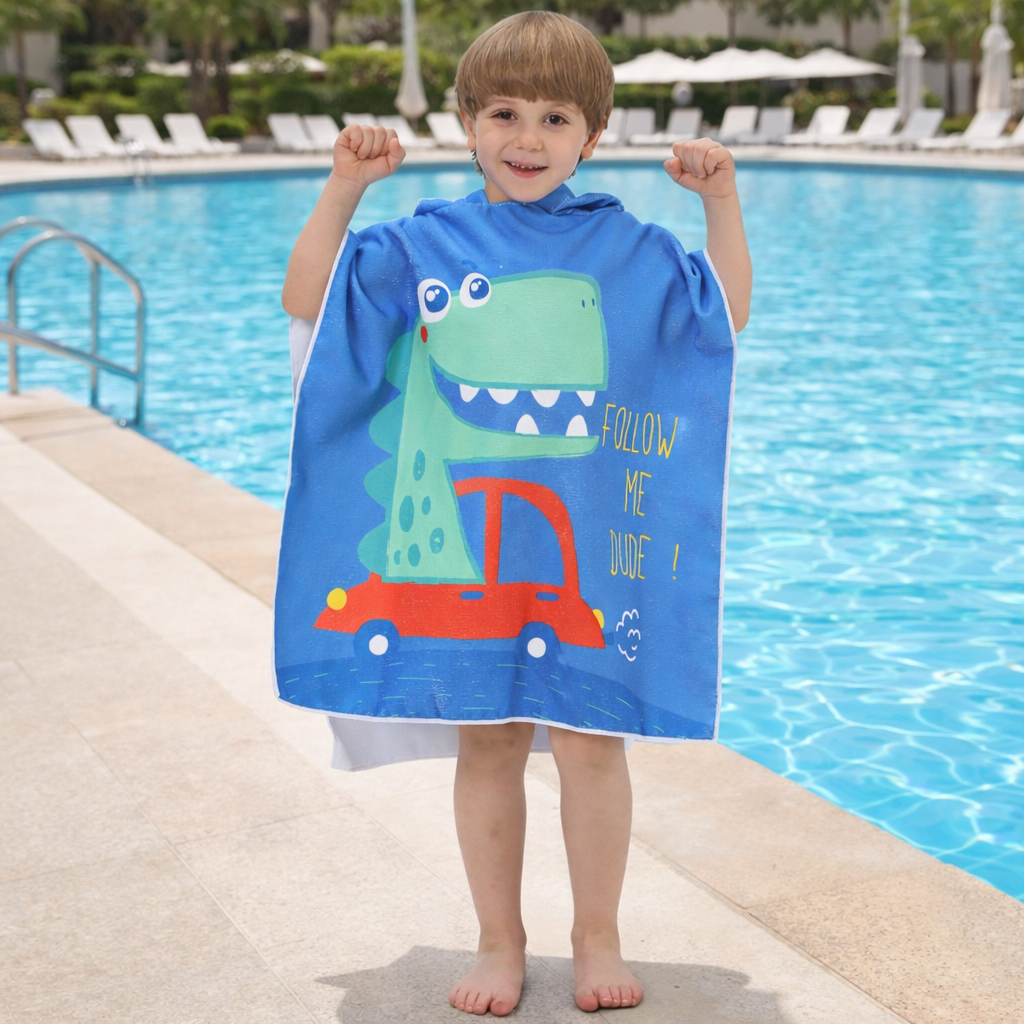 Su tela suave y absorbente ayuda a secar rápidamente mientras mantiene a los pequeños abrigados y cómodos. Gracias a su diseño tipo capa, es fácil de poner y quitar, ideal para usar después del baño, en la playa, en la piscina o incluso en casa. Ligero, práctico y lleno de personalidad.