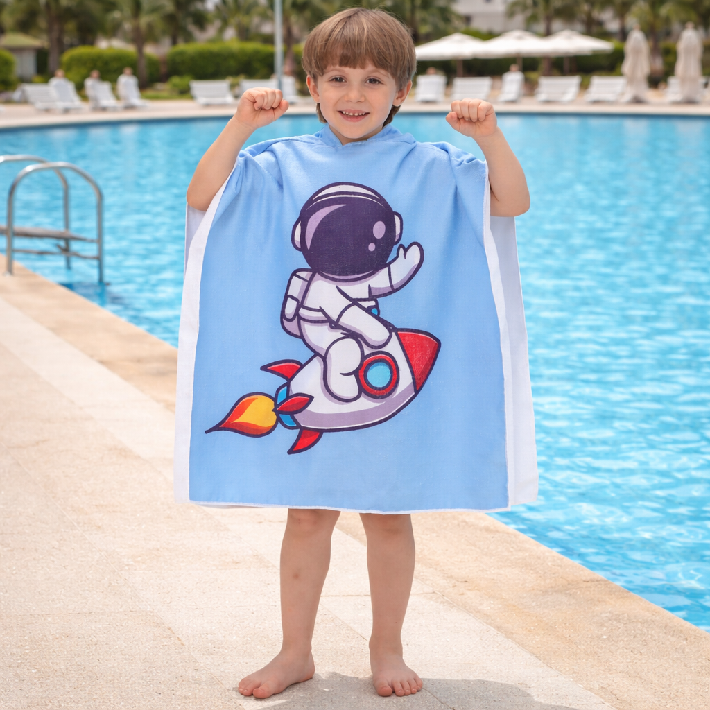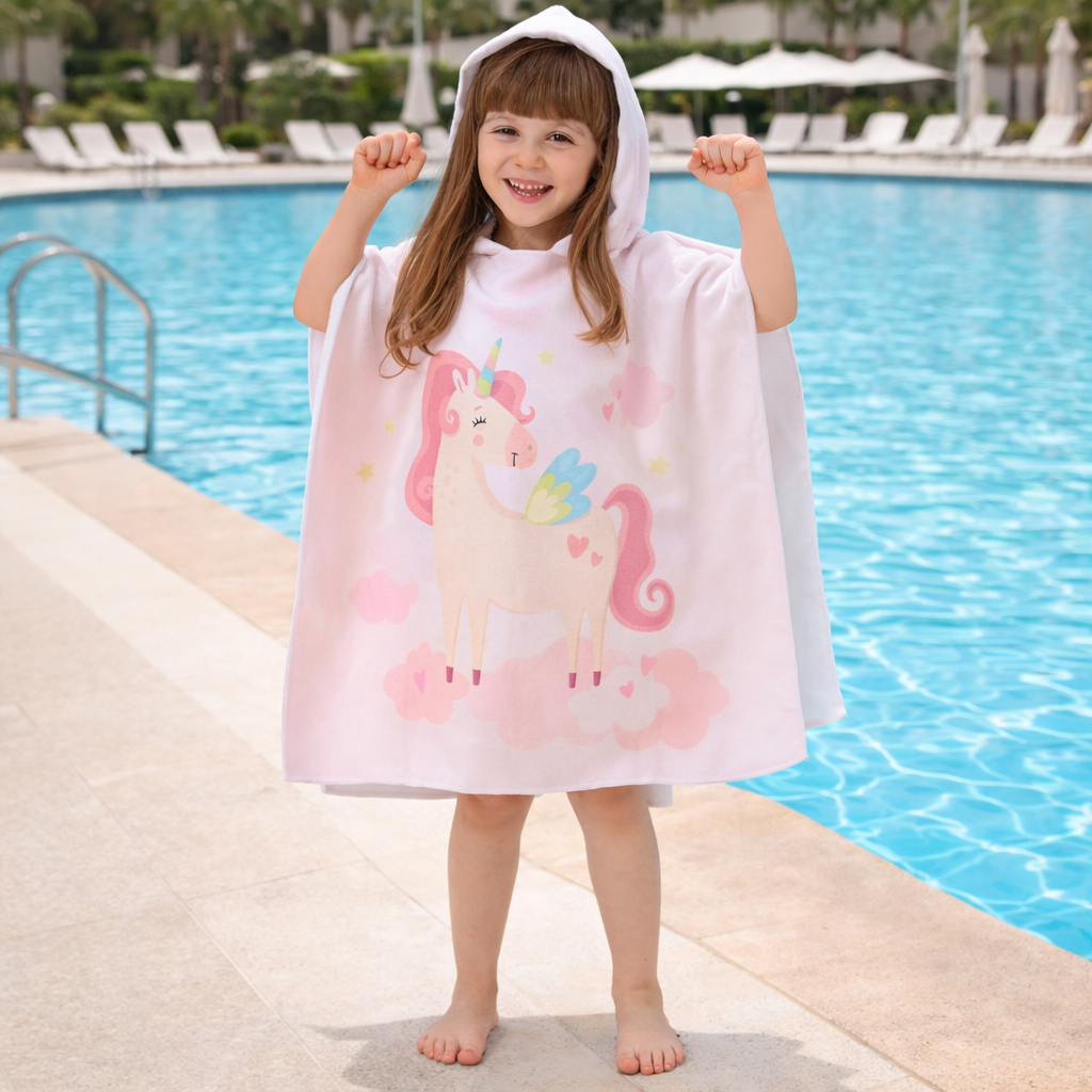 Haz que la hora del baño o la piscina sea aún más divertida con esta toalla infantil con capucha, diseñado con estampados adorables y colores vibrantes que enamoran a primera vista. Desde unicornios y sirenas hasta dinosaurios y astronautas, cada diseño convierte el momento de secarse en una experiencia mágica.