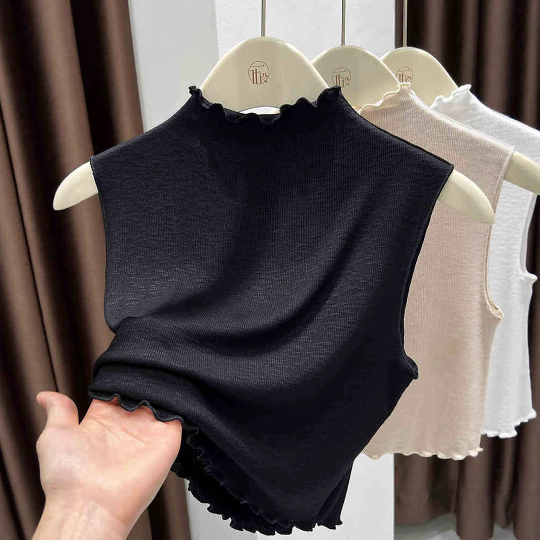 Este top sin mangas con cuello alto y textura acanalada es perfecto para crear looks elegantes, minimalistas y súper combinables. El detalle ondulado en cuello y ruedo le da un toque femenino sutil que lo diferencia de cualquier básico tradicional.