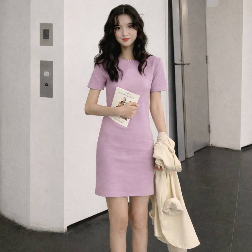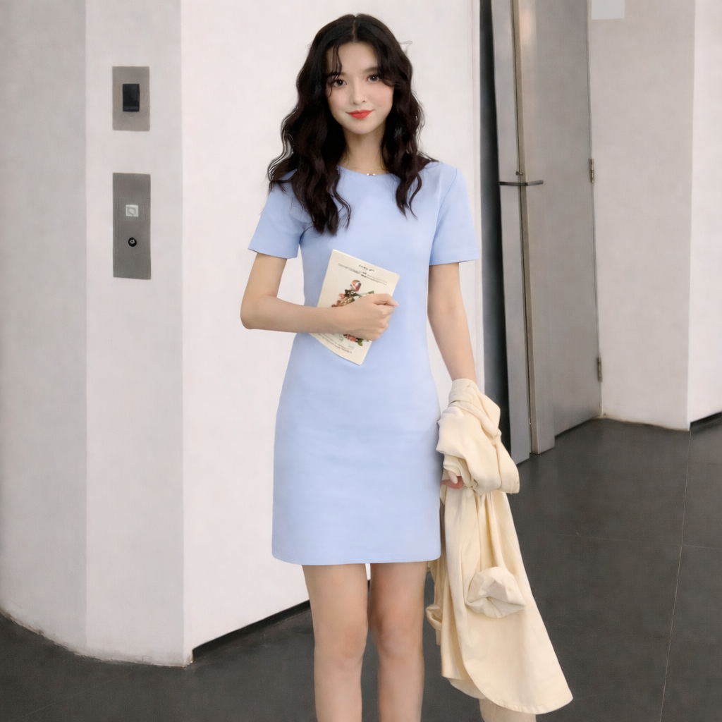 El vestido corto ajustado manga corta es una prenda esencial para quienes aman la sencillez con estilo. Su diseño liso y silueta recta realzan la figura de manera delicada, brindando un aspecto limpio y femenino que se adapta a distintas ocasiones.