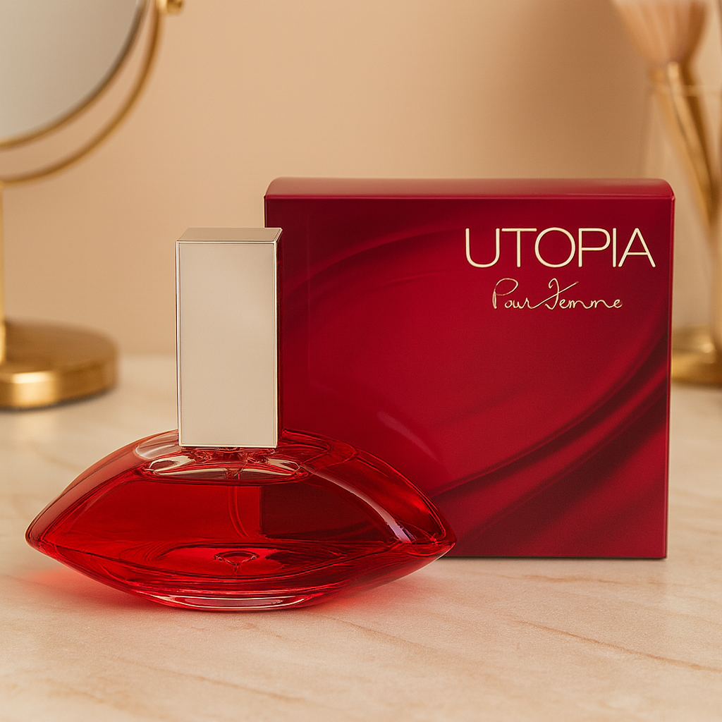 Descubre Utopia Pour Femme Eau de Parfum 30ml, una fragancia femenina que combina elegancia, frescura y sofisticación. Su frasco en tono rojo intenso con diseño moderno es tan cautivador como su aroma, convirtiéndolo en el accesorio perfecto para tu tocador.